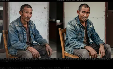 このトレードオフは意図的であり、画像の明瞭さとテクスチャ品質の最大化という目標と一致しています。より自然なリアリズムを求めるユーザーは、ポストプロセスで微細なグレインやノイズを追加することを検討できます。