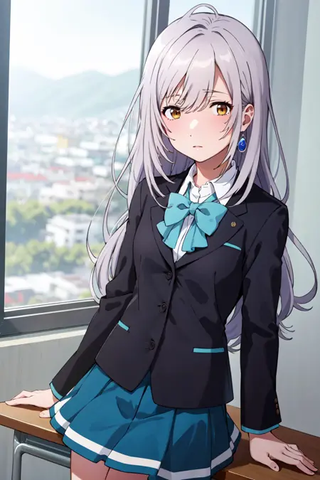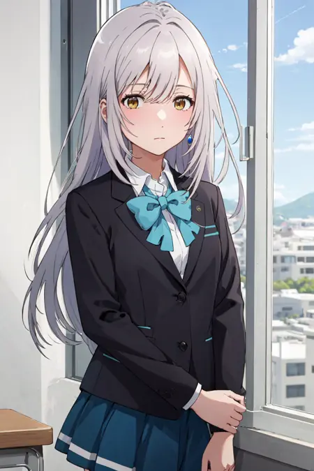 히토미 츠키시로 프롬프트 예시 - 검정 재킷과 함께한 교복