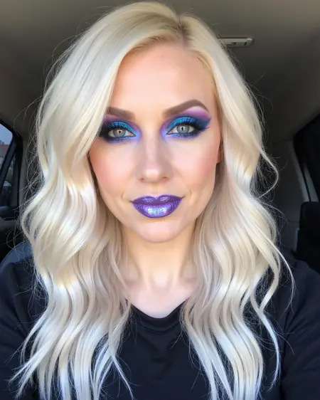 g4laxy, platinum blonde, dramatic galaxy eye makeup, violet chrome lips