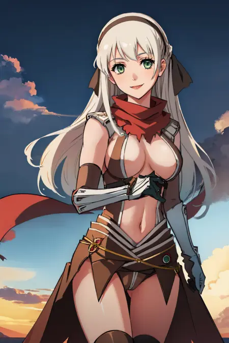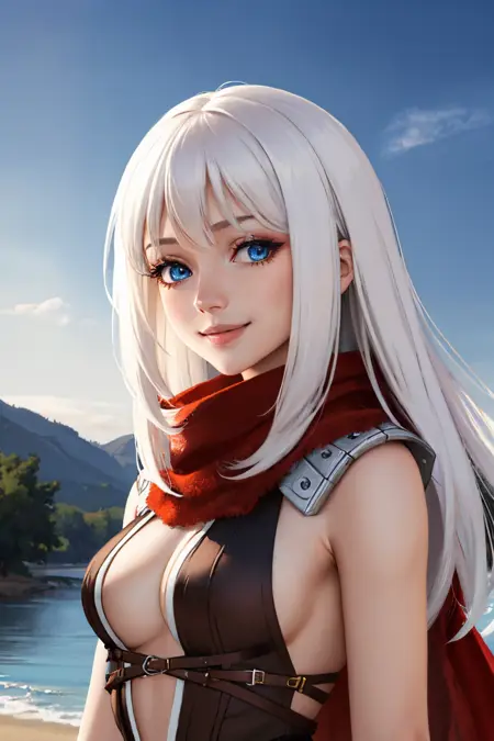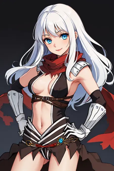 트리거 + 추가 태그: ragnarokascross, gloves, vambraces, red scarf