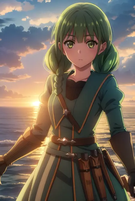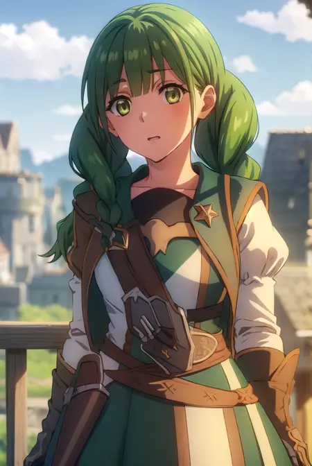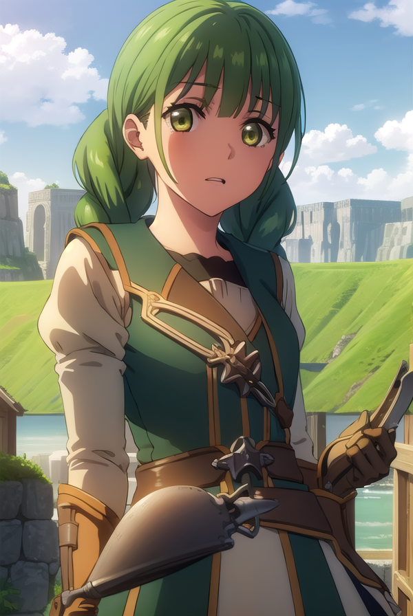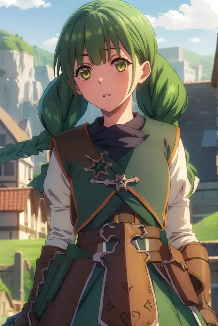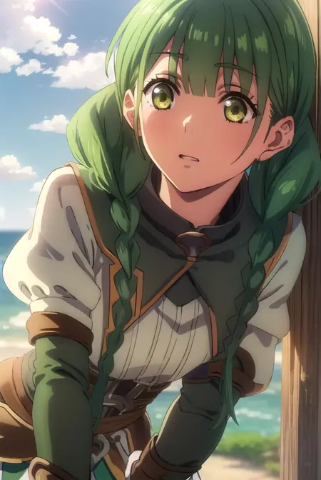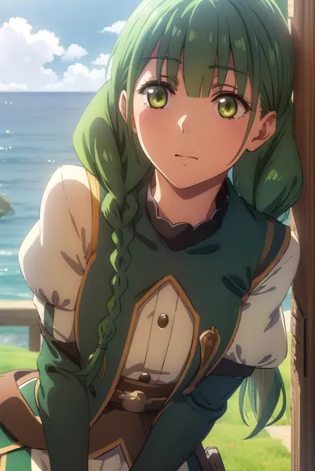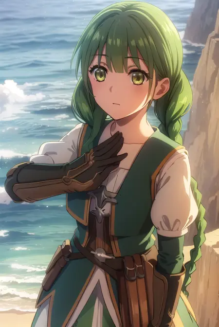rishia ivyred、長い髪、リボン、(緑の目:1.3)、編み髪、髪のリボン、緑の髪、二重編み髪、