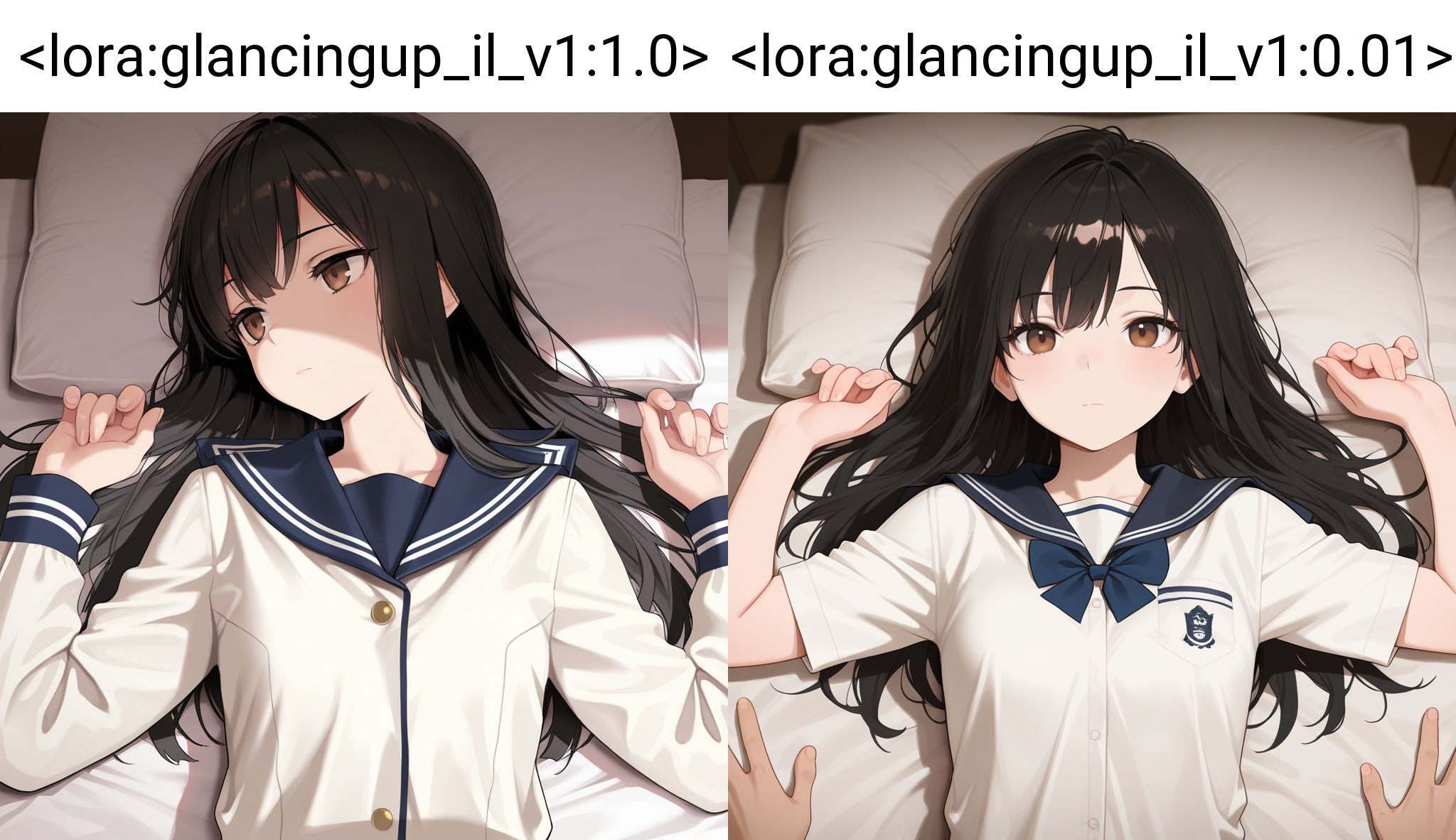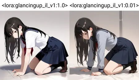This LoRA assists in generating ambiguous expressions commonly referred to as “lost in thought” or “glancing up,” where the character looks diagonally upward.