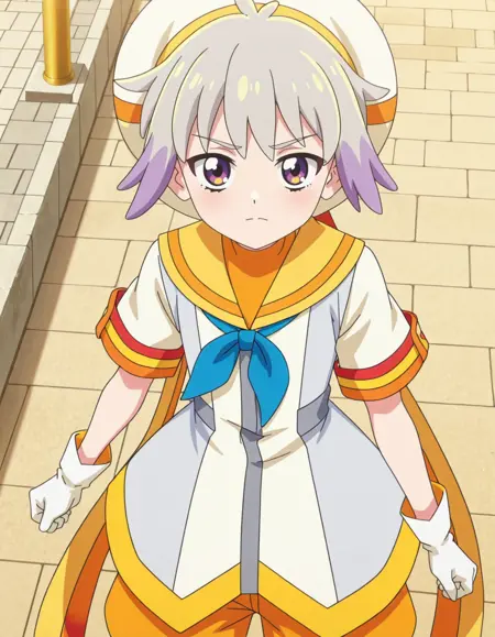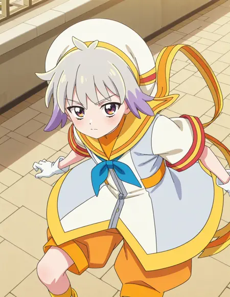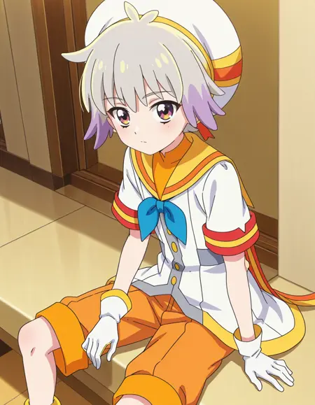 动漫截图,单人,1个男孩,daifukuhenshin,toyamadaifuku,帽子,短裤,白手套,水手领,水手帽,短袖,白色头饰,lora:toyamadaifuku_IL:0.8 高清晰度,绝佳画质,最佳画质,非常美观,杰作,absurdres