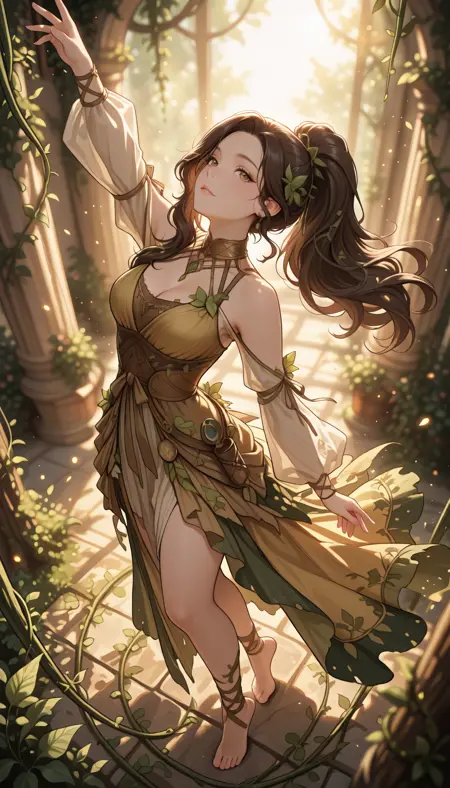 Character: 1girl, brown hair, dnd_elia, ponytail