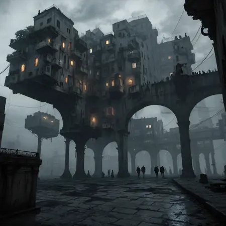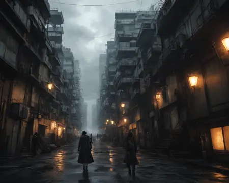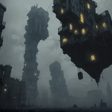 The embedding will introduce these properties: chaotic 'glued cubicles' architecture, odd angles, darkness, wires, ink drawing style and for some reason old style lanterns. For me it worked nicely with realistic models, particularly these two: