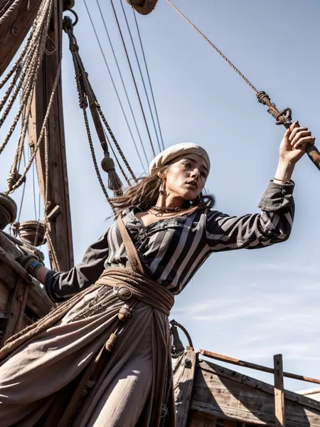First out the of the gate. Came out a little too Johnny Deppy, if you know what I mean. Still tends to consistently deliver credible looking pirate captains, mates and women pirates. Made a mistake and baked this with a dimension of 9 and an alpha of 1. But I like the results. I'm going to experiment with using lower dimensions and alphas in the future. Works with the trigger keyword p1r4t3s, but you can omit it for different effects. The other keywords are "captain", "mate", and "female". Don't use the word "pirate" in your prompt or you will get a bunch of dorky cheesy pirate costume dreck that is in the base models.