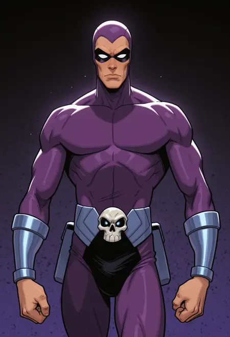 这是来自美国冒险漫画《幻影侠》(The Phantom)的 Lora 模型,主角为 基特·沃克,幻影侠,该漫画由李·法尔克于1936年2月首次出版。