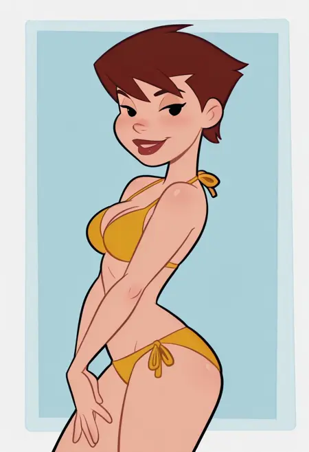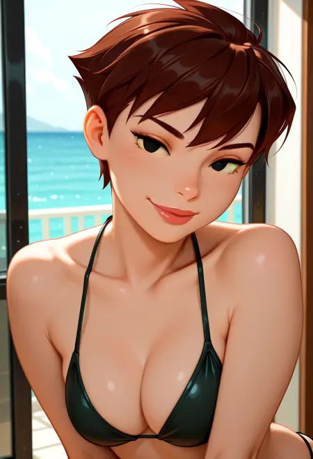 DaniBurnstrb, brown hair, short hair, no sclera, black eyes, lips, tomboy
