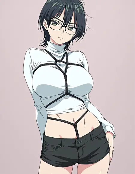 A mini sized LoRA model with bondage pack outfit worn by BJ.