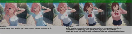 重要: LoRAがキャラクターを正確に表現するように、タグ momo_ayase を使用してください!