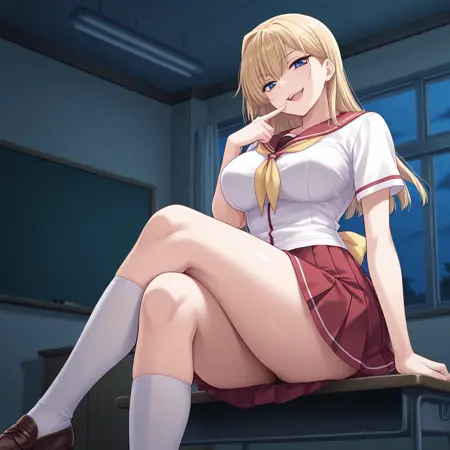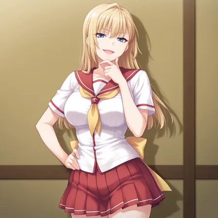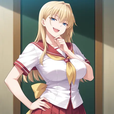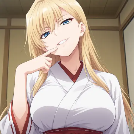 キャラクター: 1人女の子、長い髪、金髪、青い目、大きな胸、