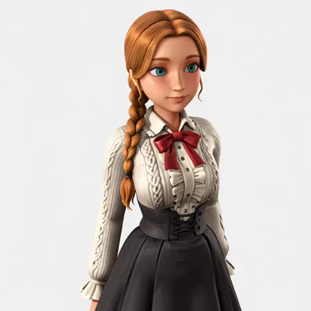 バンドル付きトリガー:SiennaHair, 1girl, black gloves, freckles, braid, brown hair, coat, belt, cowboy shot, 3d