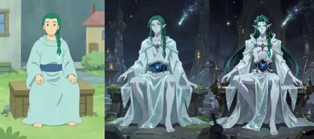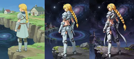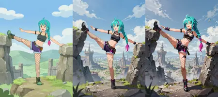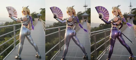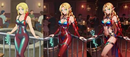 사진의 경우, 1은 수정된 영화 포스터처럼 보이게 하고, 음수 값은 더 현실적인 비율과 다소 단순한 의상을 제공합니다. 효과는 더 미묘합니다.