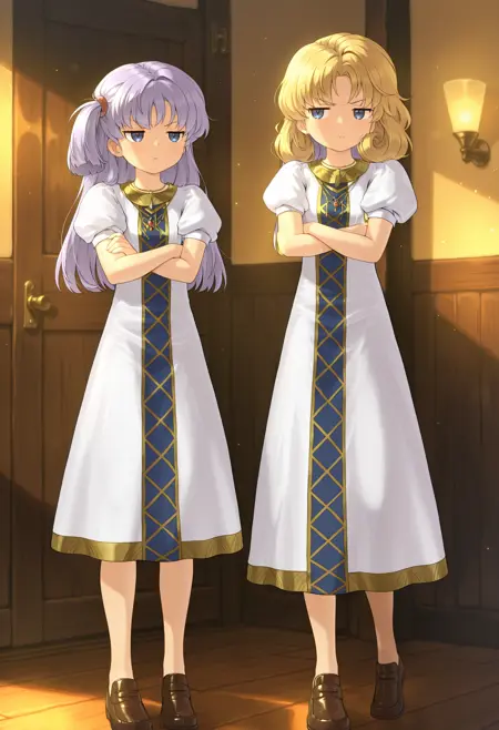 Default prompt : marisha_(fe), long hair, white dress, purple hair, purple eyes,puffy sleeves, one side up, jewelry, necklace