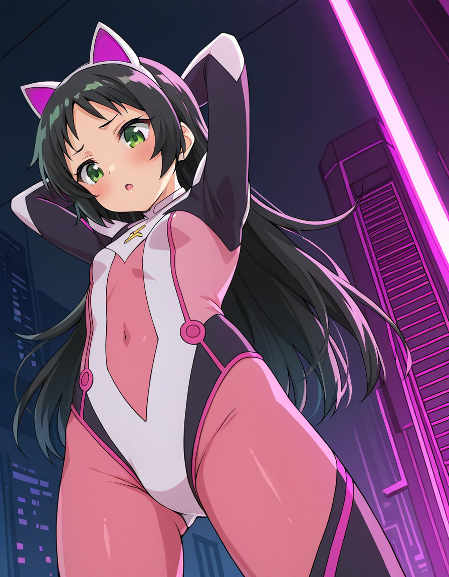 tpk bodysuit, 보라색 귀, 분홍색 꼬리