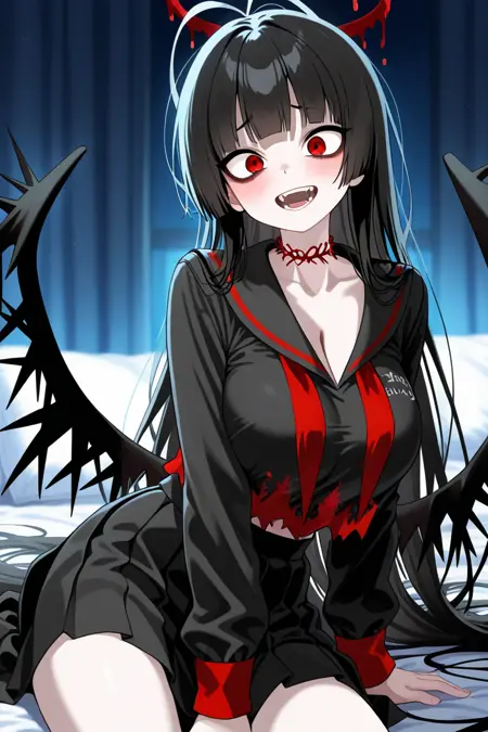 Blue Archive Tsurugi,1girl,Head Dark,shirt black(School),skirt long black,