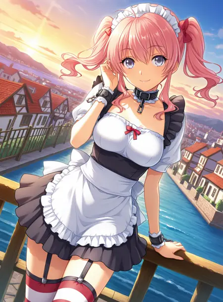 chain choker, maid dress, chain wrist cuffs,靴下/袜子/Thighhighs: