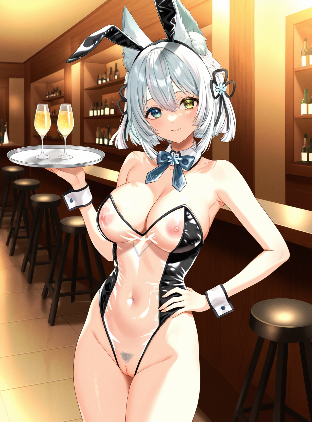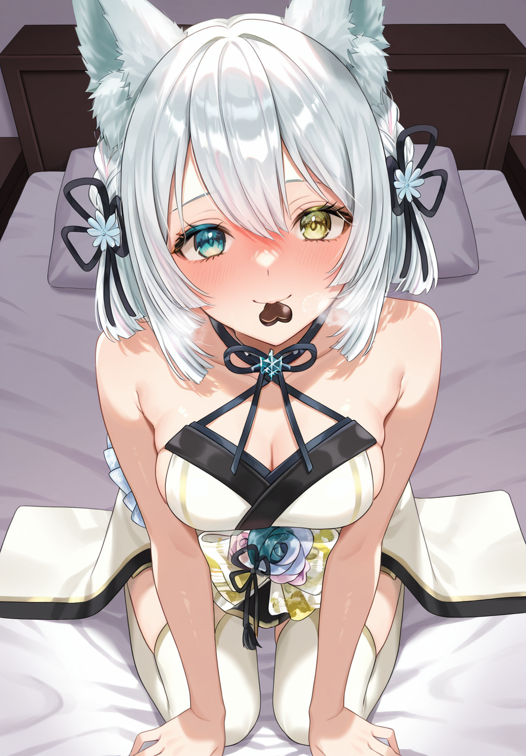 medium hair, two side up, wolf ears, hairclips, heterochromia,