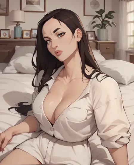 some styles may emphasize her long neck, could put in NEG to reduce
