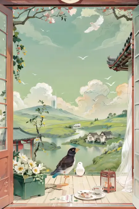 모델 창의성 - 국가 트렌드 시리즈 일러스트레이션을 위한 훈련으로, 신선한 회화 스타일과 풍부한 국가적 스타일을 지닌 국가 트렌드 모델을 생성; 국가적 스타일의 장면과 캐릭터에 대한 반응이 매우 뛰어남; 모델은 자동으로 이미지 환경에 적응하여 전반적인 톤을 통일하여 쾌적한 색상 조화를 달성함. 이 모델은 과조 일러스트의 색상 또는 빛선 윤곽 특징을 계승하며, 모델의 선 효과가 이전의 단일한 어두운 선과는 달리 더 뚜렷함;
