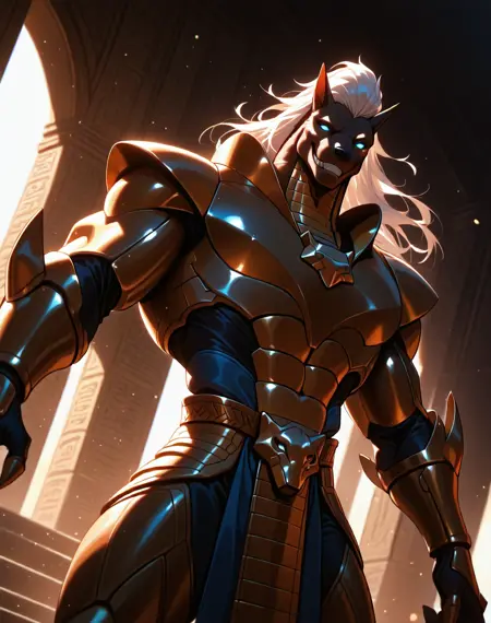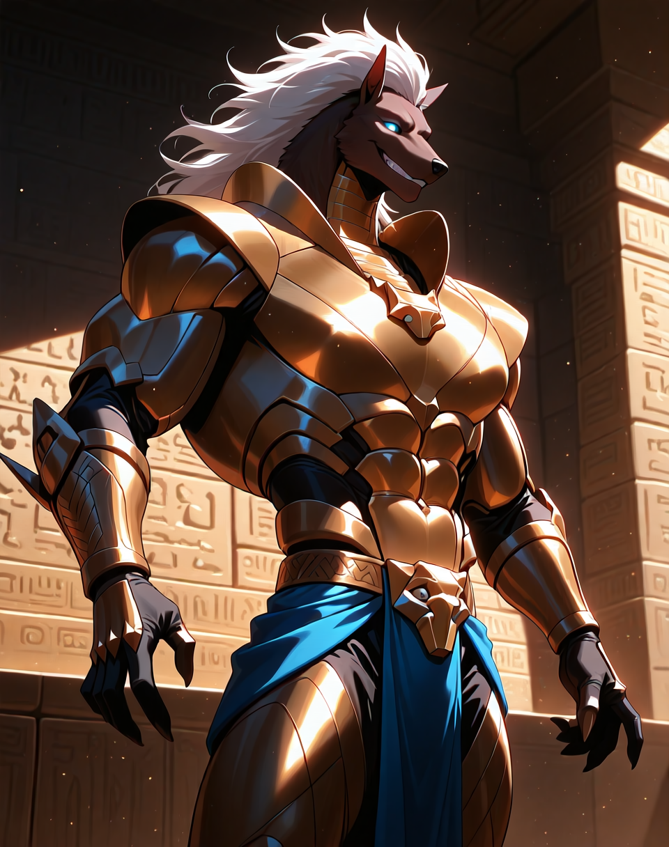 Prompts for this lora are ( JackalAnubis, muscular, robot, Anubis, ). For whatever reason the red cyborg eye on the right doesn't like to show up at all. I am not sure why nor how to prompt it to show up.