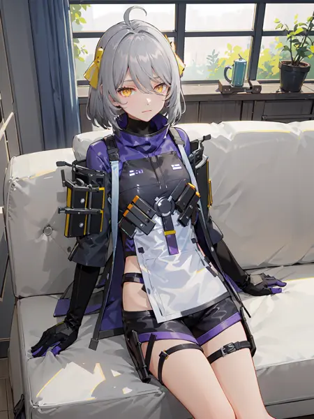 3.在创作NSFW内容时,请保留提示词:ANKAXIYA, grey_hair, short_hair, ahoge, yellow_eyes, 1girl 请根据实际情况调整权重,同时使用更多更精确的NSFW相关提示词,增加NSFW相关提示词的权重,根据出图情况,决定是否将提示词中的衣服类Trigger Words 加入负面提示词。您也可以搭配使用其它NSFW类别的LORA来辅助出图。