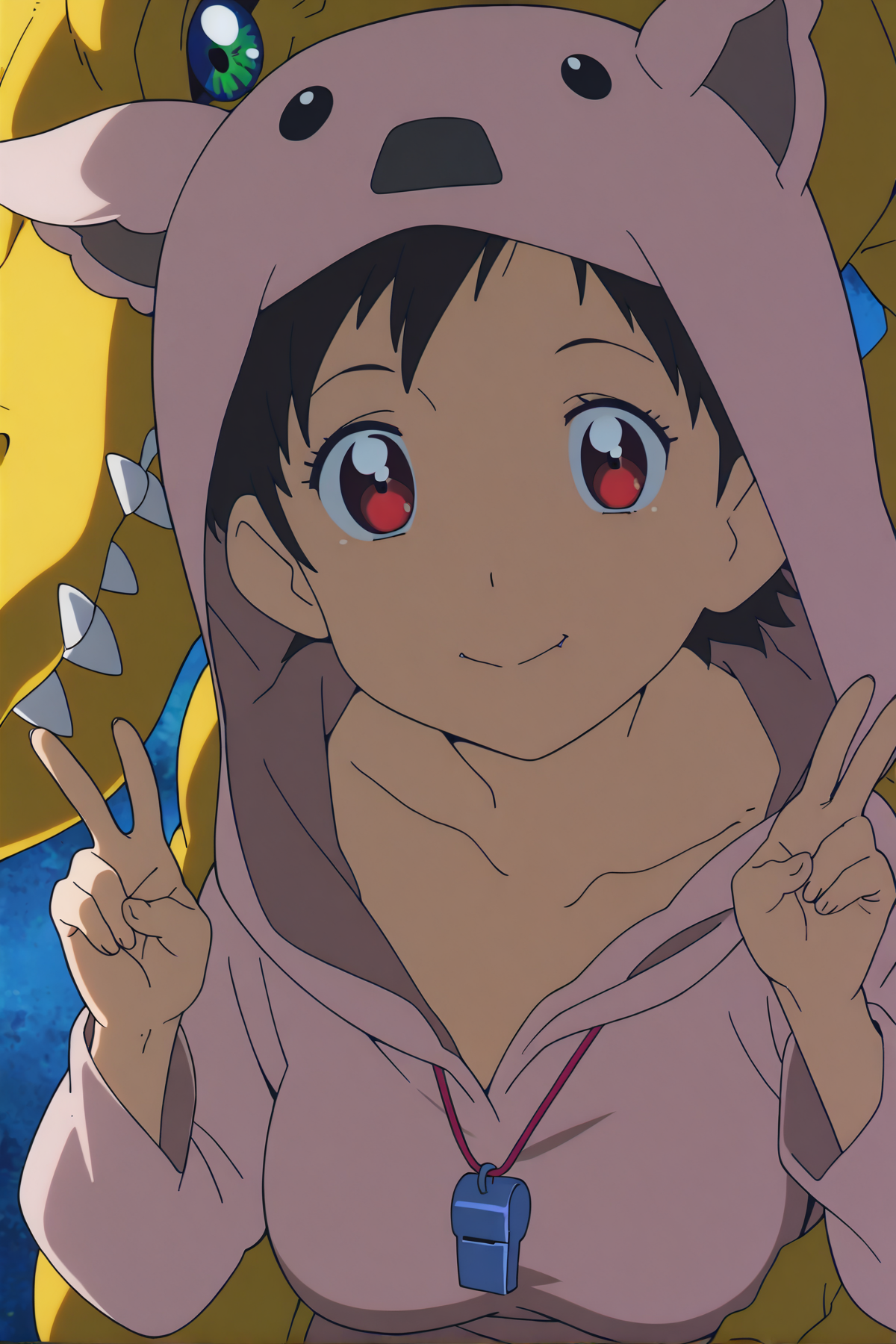 kari \(1stmovie\), pink pajamas, whistle around neck, (adding pink-p@jamas may help)