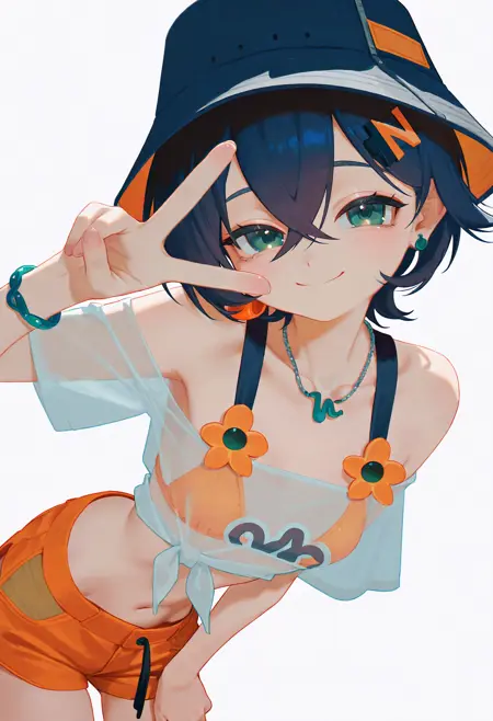 orange shorts,