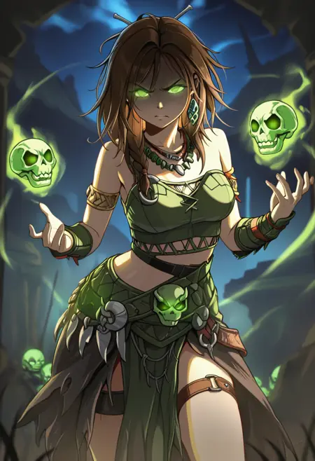 The Magic the Gathering character Meren, who sought vengeance on her past home of Jund after being cast out. Her lore is set in Alara, but her only card appearance was Meren of Clan Nel Toth from the Commander 2015 precon.
