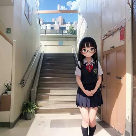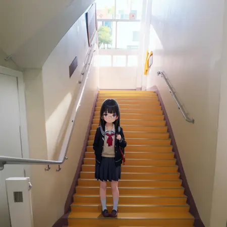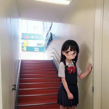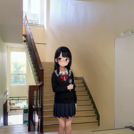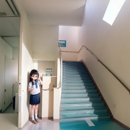 日本の学校の校舎の階段っぽい風景をもしかすると描けるかもしれないLoRAです。学校の階段だけで再学習してみました。