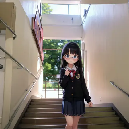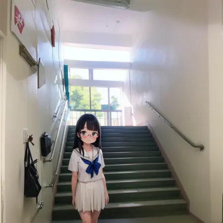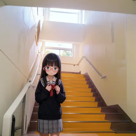 这可能是一个能描绘出类似日本学校教学楼楼梯场景的LoRA。我仅使用学校楼梯的图像进行了再训练。
