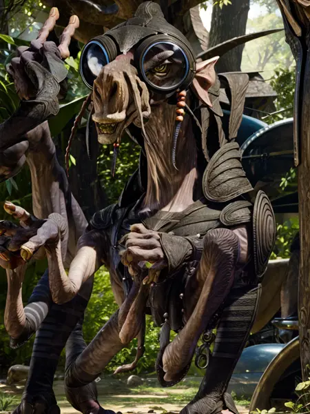 触发词仅为“sebulba”。你也可以使用“with goggles”或“without goggles”来决定他是否佩戴飞行员护目镜。