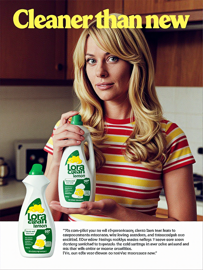 プロンプトに推奨される用語: 70scomprint, 70s advertising