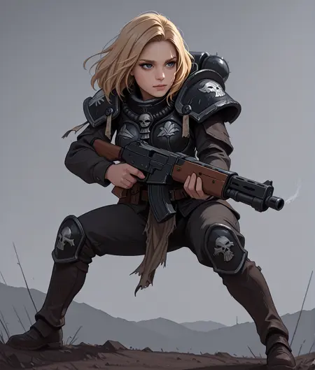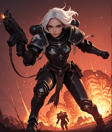 此LoRA旨在生成视觉上引人注目的Adepta Sororitas插图,聚焦于类似战锤40K中战斗修女的黑暗奇幻美学。频繁出现的标签如“battle_sister”、“armor”和“weapon”表明,该模型着重刻画在战火纷飞、戏剧性环境中具有标志性的战士形象。