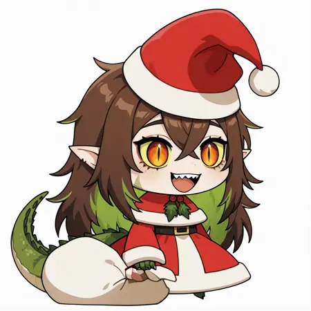 Prompts: tail, monster girl, slit pupils, scales, green skin, , multicolored skin, yellow sclera, 1girl, solo, long hair, crossed bangs, green hair, teeth, multicolored hair, black pants, brown hair, hair between eyes open mouth,sharp teeth,