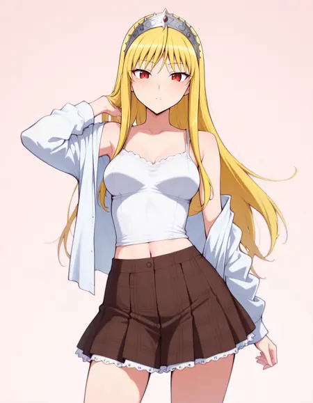 A mini sized LoRA model with Camisole & Plaid skirt worn by BJ.