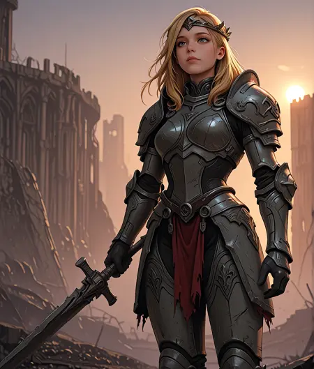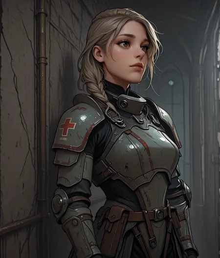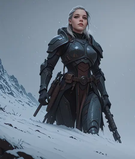 This LoRA specializes in creating stylized illustrations of warriors and mercenaries from a gritty, post-apocalyptic world reminiscent of “House Van Saar” in the Necromunda/Warhammer 40K universe. The focus is on heavily armored figures engaged in combat, emphasizing dynamic poses, detailed high-tech weaponry, and atmospheric settings reflecting decay and struggle. The style leans towards illustrated artwork with strong contrasts and a sense of raw action.