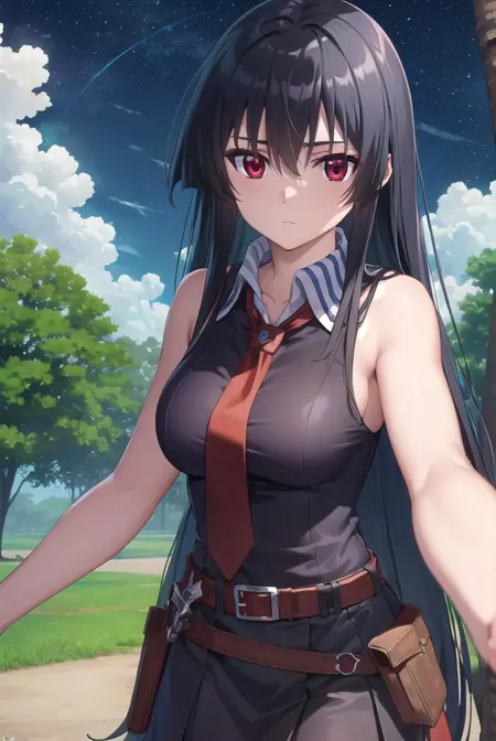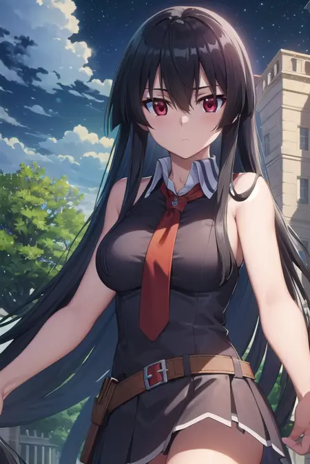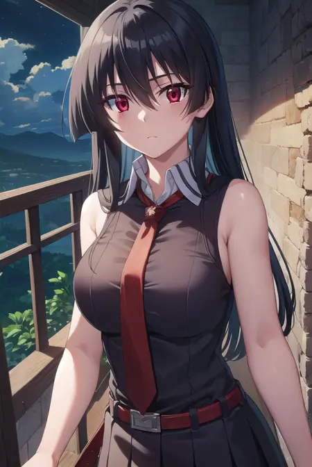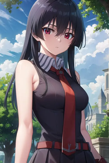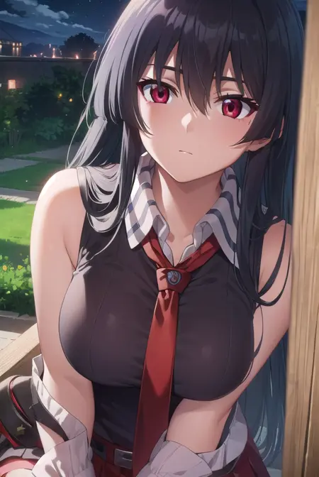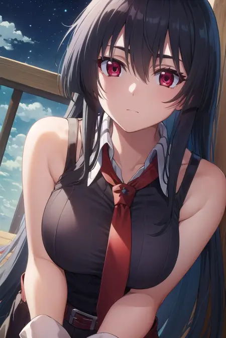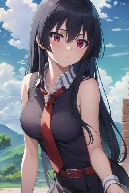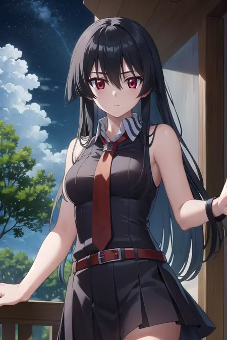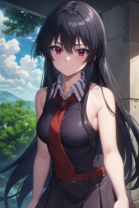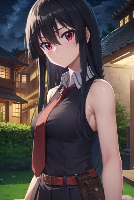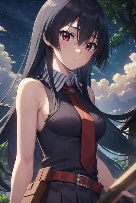 akame,长发,黑发,(红眼:1.3),头发位于眼睛之间,