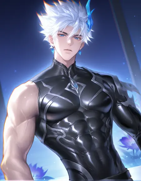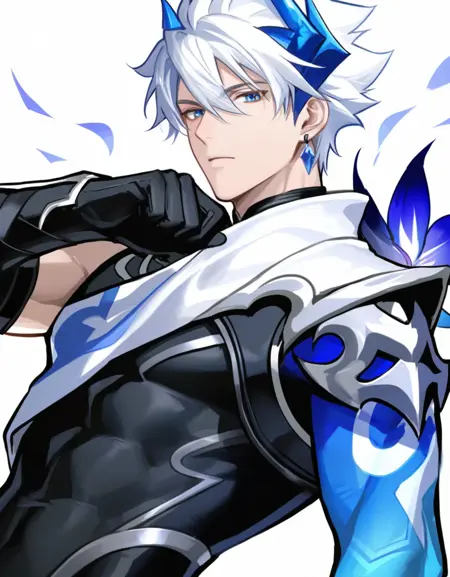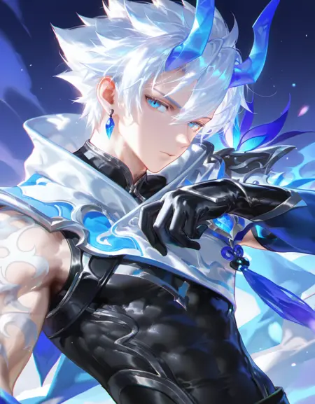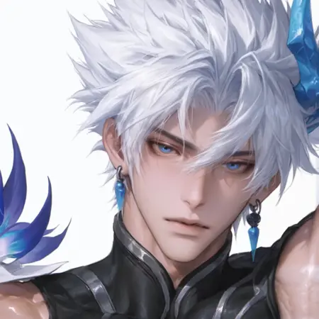 • 头部:蓝色眼睛、耳环、珠宝、单只蓝色角、白发、尖刺状头发