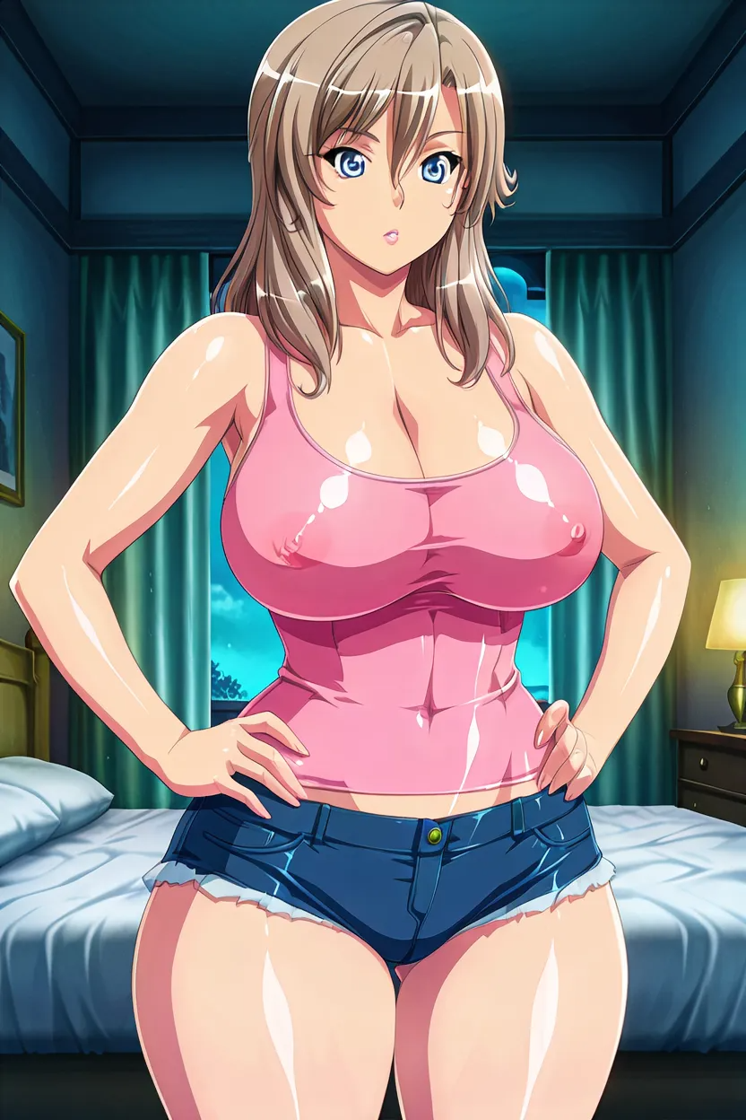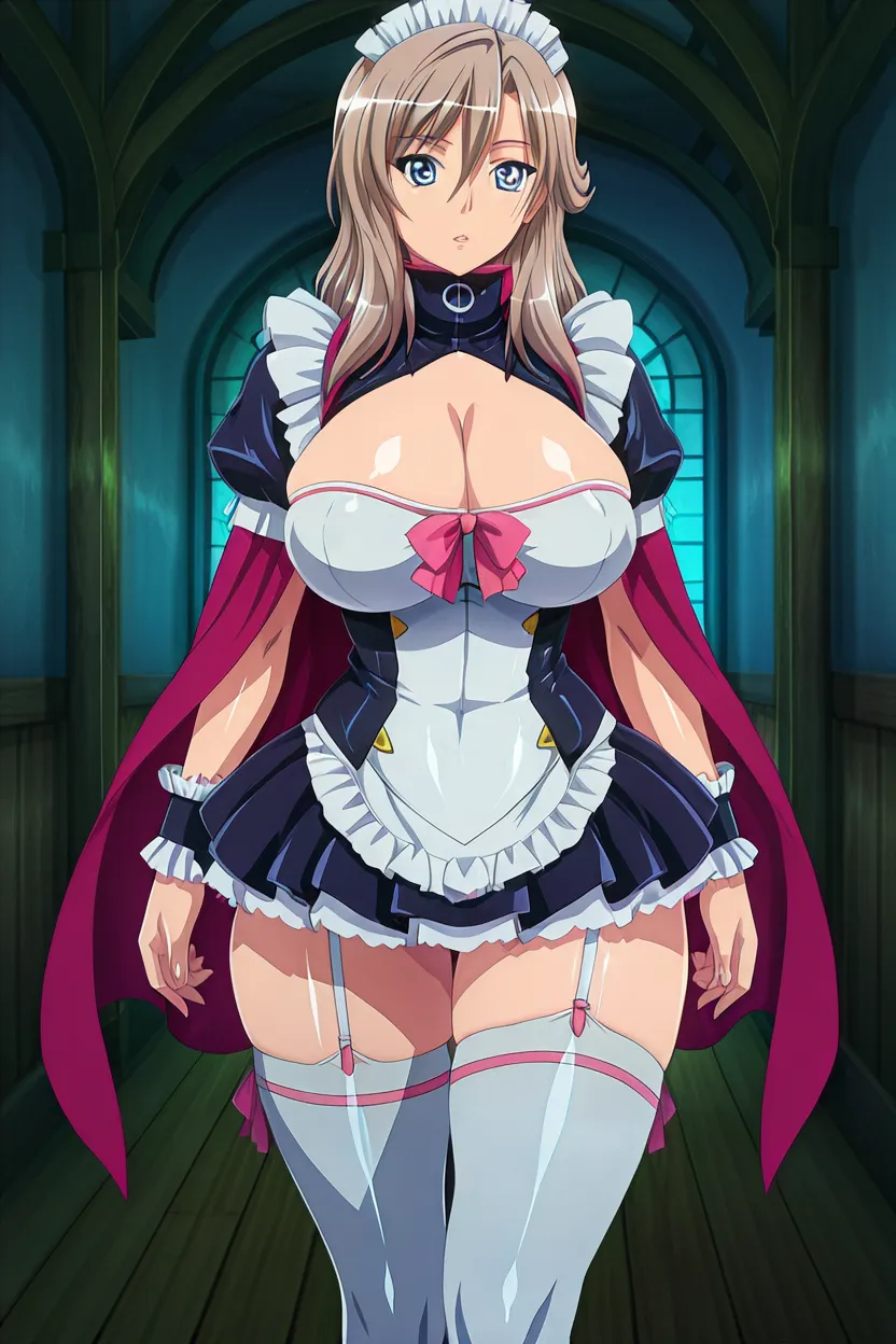 1girl, Zara (Q.B.G), light brown hair, long_hair, blue_eyes, glossy lips, thick lips, massive breasts, queens_blade_art_style, HD, 4k, High-resolution, superb-Quality, No-Flaws, clean animation