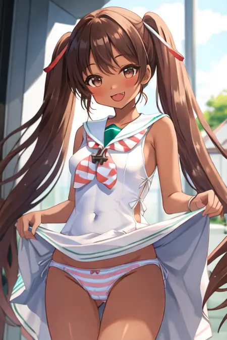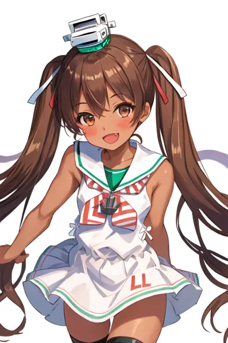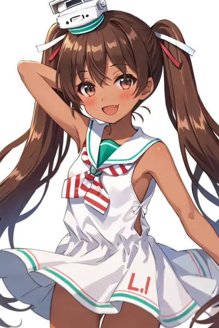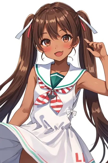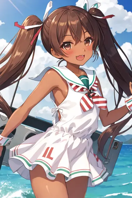 트리거 단어는 libeccio_kantaicollection이며, 권장 태그는 best quality, masterpiece, highres, solo, {libeccio_kantaicollection:1.15}, long_hair, brown_hair, twintails, dark_skin, dark-skinned_female, brown_eyes, ribbon, open_mouth, hair_ribbon, smile, fang, blush, sleeveless입니다.