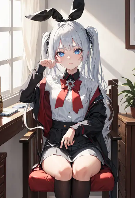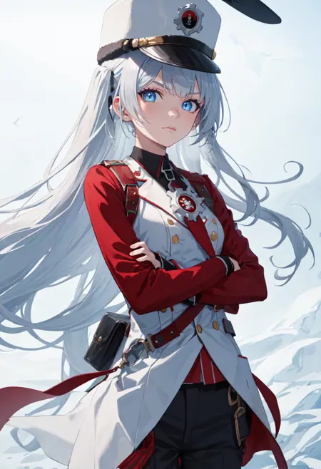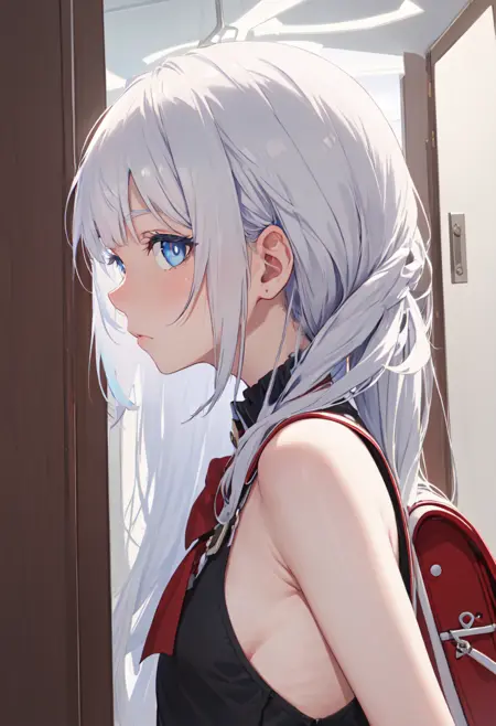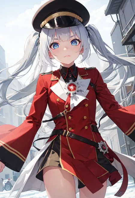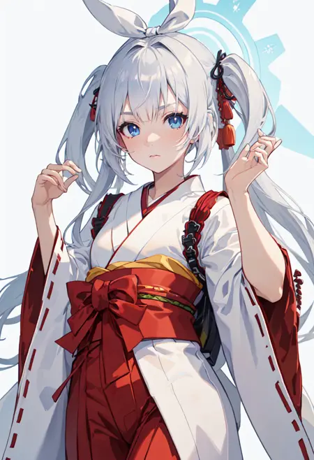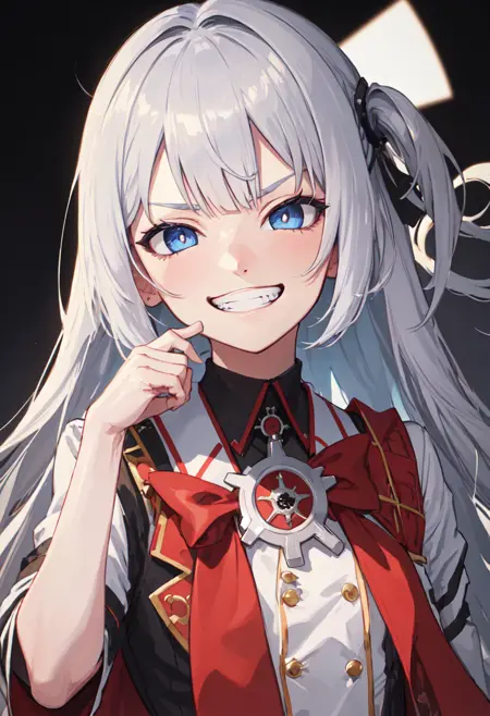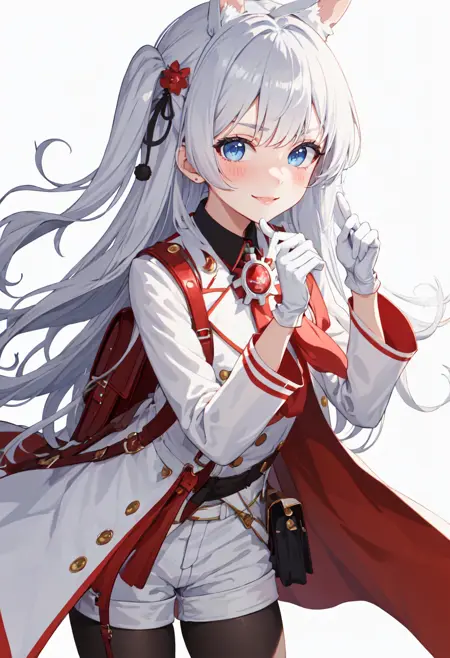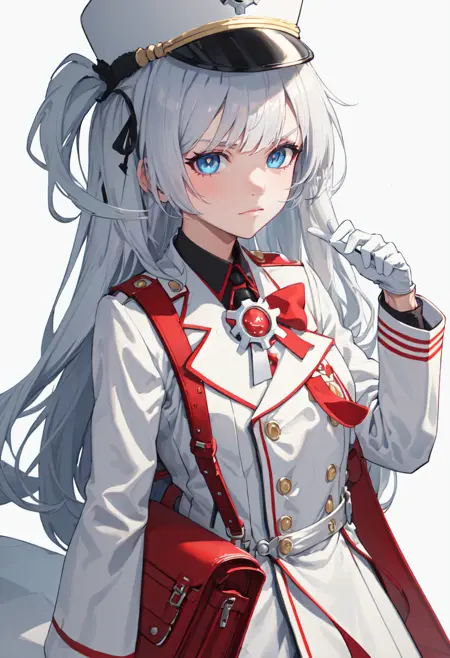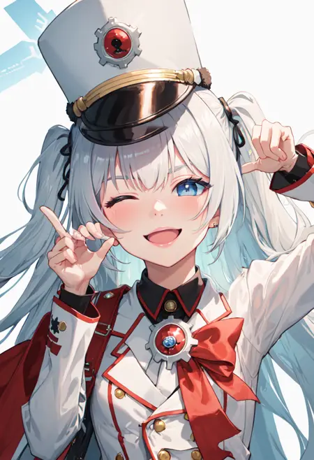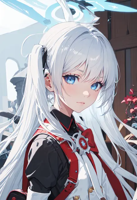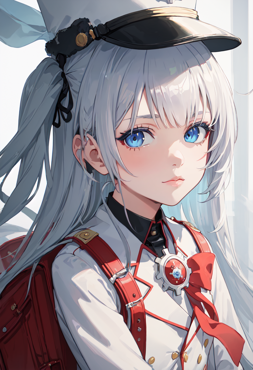 触发词为 cherino_bluearchive,修剪后的标签为 long_hair, blue_eyes, white_hair, halo, fake_facial_hair, fake_mustache, grey_hair, hat, two_side_up, ribbon, shako_cap。当某些特征(例如发色)有时不稳定时,您可以将它们添加到提示词中。
