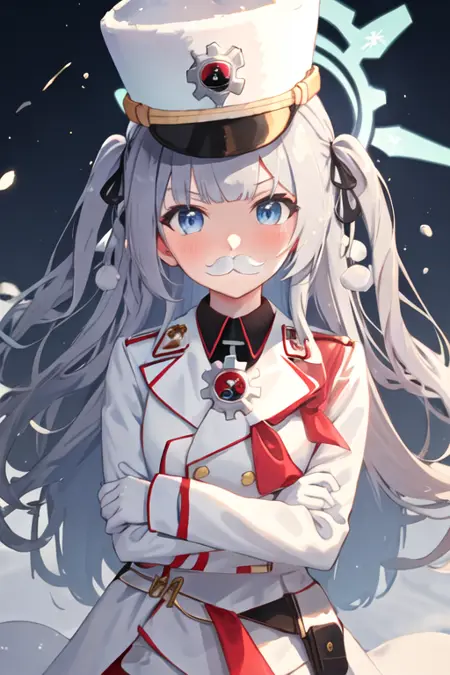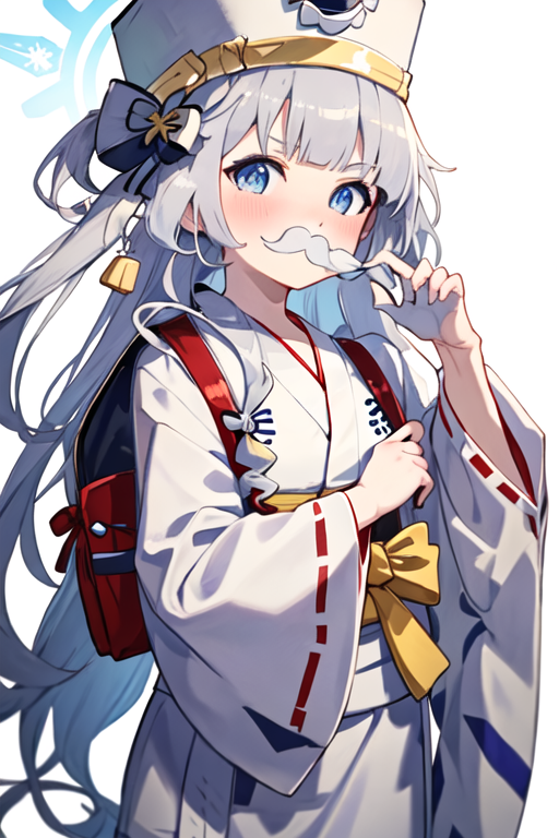 - The pruned character tags are long hair, blue eyes, white hair, halo, fake facial hair, fake mustache, grey hair, hat, two side up, ribbon, shako cap. You can add them into prompts when core features (e.g. hair color) of character is not so stable.
