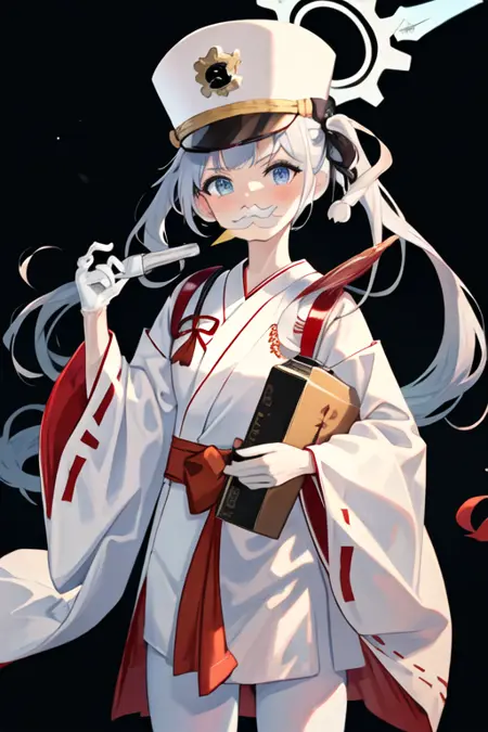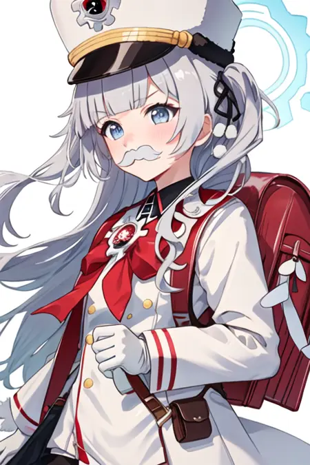 The trigger word is cherino_bluearchive, and the pruned tags are long_hair, blue_eyes, white_hair, halo, fake_facial_hair, fake_mustache, grey_hair, hat, two_side_up, ribbon, shako_cap. When some features (e.g. hair color) are not so stable at some times, you can add these them into your prompt.