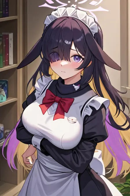- The pruned character tags are rabbit ears, animal ears, long hair, lop rabbit ears, hair over one eye, breasts, purple eyes, rabbit girl, halo, purple hair, multicolored hair, large breasts, colored inner hair, blonde hair, black hair. You can add them into prompts when core features (e.g. hair color) of character is not so stable.