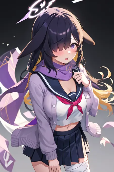 The trigger word is tsukuyo_bluearchive, and the pruned tags are rabbit_ears, animal_ears, long_hair, lop_rabbit_ears, hair_over_one_eye, breasts, purple_eyes, rabbit_girl, halo, purple_hair, multicolored_hair, large_breasts, colored_inner_hair, blonde_hair, black_hair. When some features (e.g. hair color) are not so stable at some times, you can add these them into your prompt.