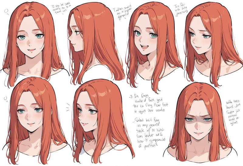 1소녀, 파란 눈, 녹색 눈, 빨간 머리, 주황색 머리, 긴 머리, 앞머리, 갈라진 앞머리