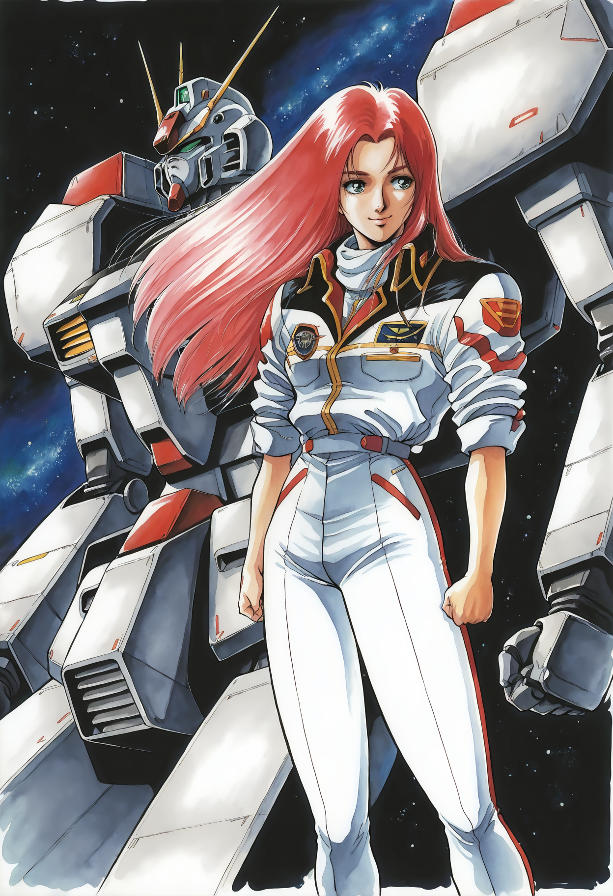 분홍색 머리, 유니폼, 군사, 소매 말아 올린, 재킷, 바지, 과학 소설, 군사 유니폼, 흰색 바지
