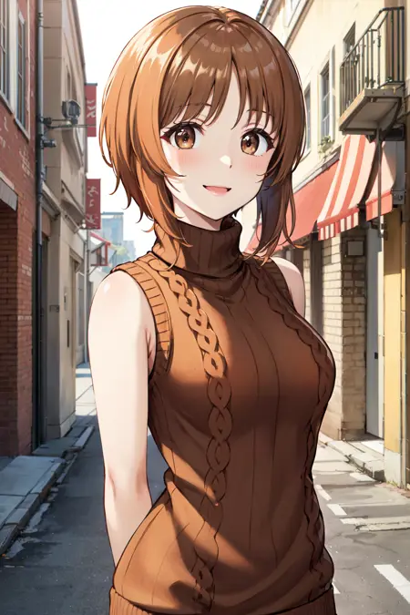 bbmiho,1girl,brown eyes,brown hair,orange hair,short hair,bangs,ooarai military uniform,(blue jacket:1.2),green shirt,long sleeves,white skirt,socks,(black socks:1.2),boots,black footwear