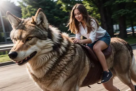 提示:全身,骑在一只超大的狮子上,奔跑,